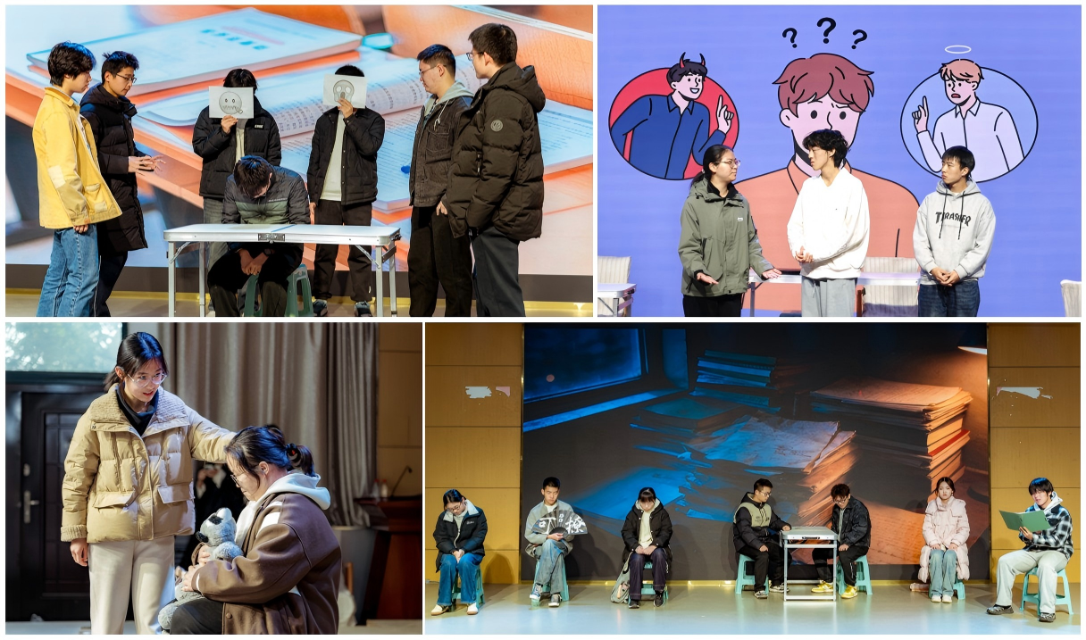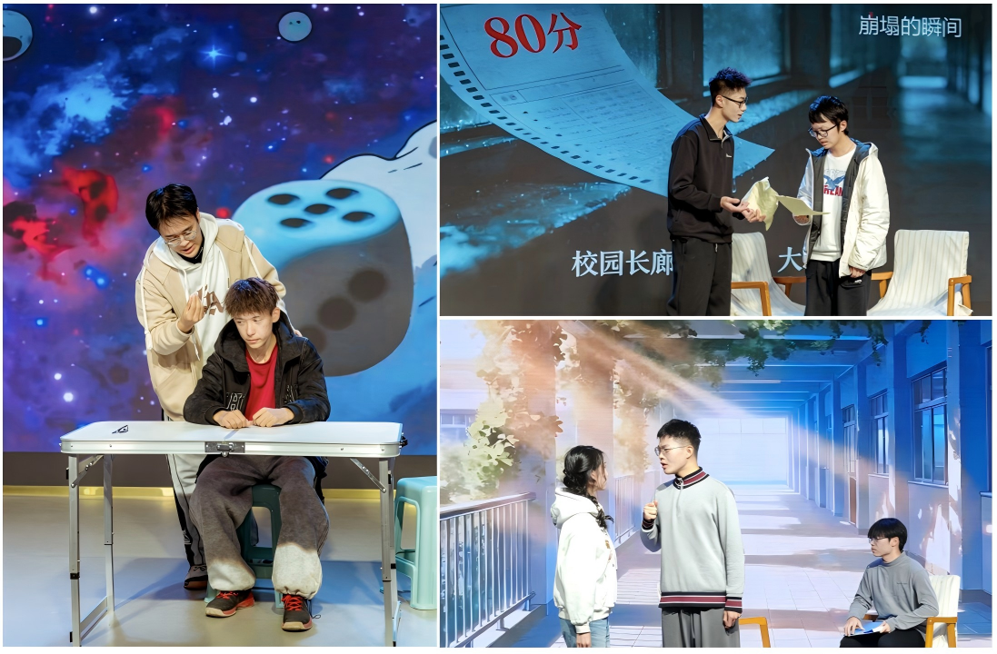 十支参赛队伍依次登场,以剧为媒,上演了一幕幕直面心灵、启迪思考的青春篇章。作品聚焦于时间管理、自我认同、团队磨合等大学生常见的心理成长课题,巧妙地将内心的思考与挣扎搬上舞台,让抽象的情感变得可见、可感。《怎么就到周日了???》幽默诠释与时间焦虑的和解,《我们,我》生动探讨团队从被动无助到主动共创的蜕变,《爱的语言》细腻展现付出型人格的初心,《重启人生》传递直面现实的勇气,《计划有变》与《骰子下的选择》共同探寻对生活的掌控感,《拨云见日》与《虑何忧》则深情演绎了情绪被看见、被言说的疗愈过程,《寻心》与《平凡英雄》则叩问成长意义。