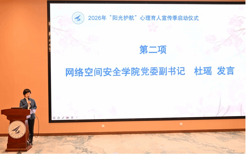 网络空间安全学院党委副书记杜瑶结合学院心理育人工作实践进行发言。她表示,学院始终把学生心理健康放在重要位置,依托“学院-班级-宿舍-心理委员”四级联动的协同育人机制,把心理关怀融入日常教育管理全过程各方面。未来将继续以宣传季为契机,打造贴合学生需求、富有学科特色的心理健康教育活动,守护学生身心健康发展。