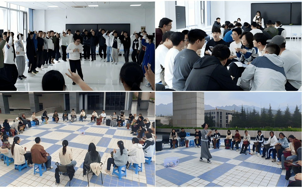 启动仪式结束后,两场特色团体心理辅导活动分别在启真楼416室和翱翔学生中心广场开展。来自西安国际医学中心的音乐治疗师团队带领学生体验艺术疗愈的魅力,现场互动热烈,反响积极。